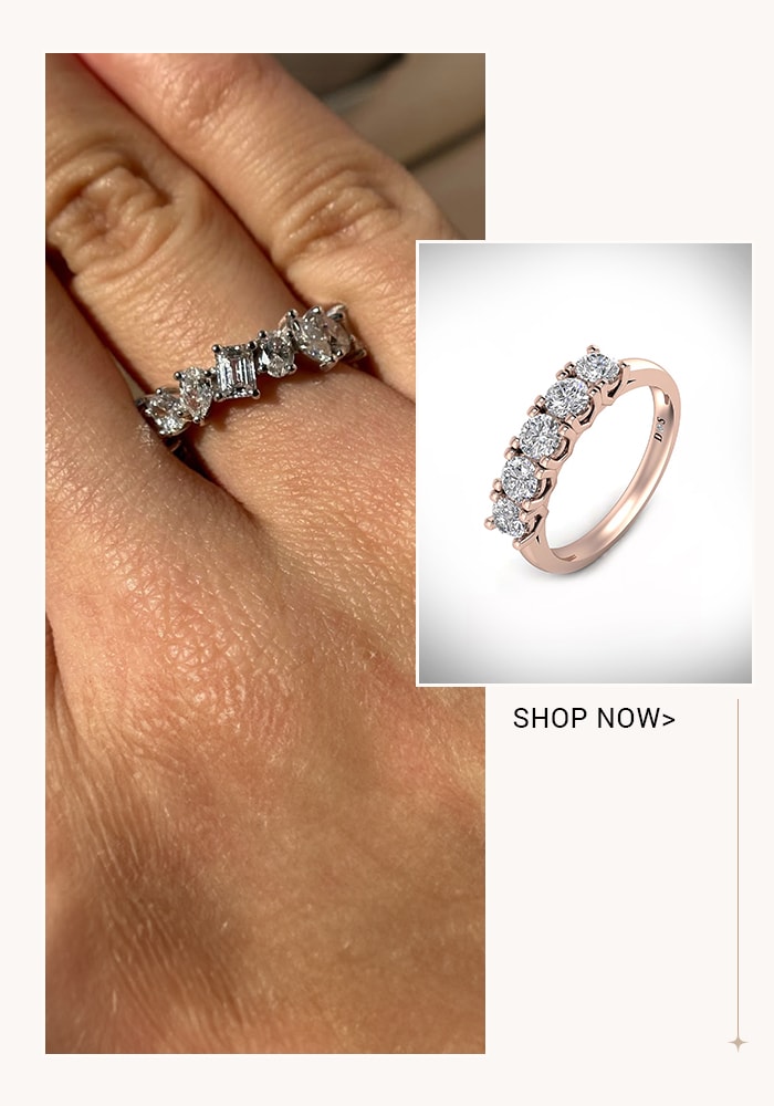 To maximize the sparkle, try switching to diamond band rings. This latest trend features a diamond encrusted ring, showcasing intricacy and craftsmanship.