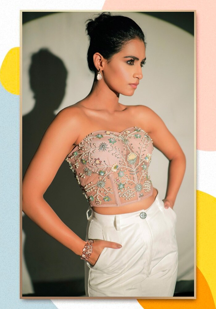 Wearing a corset certainly changes your state of mind. It has beautiful pearl and sequin floral embroidery. It comes in a variety of designs and styles. It is frequently worn over the torso as an ornamental item as part of a complex costume or formal clothing.