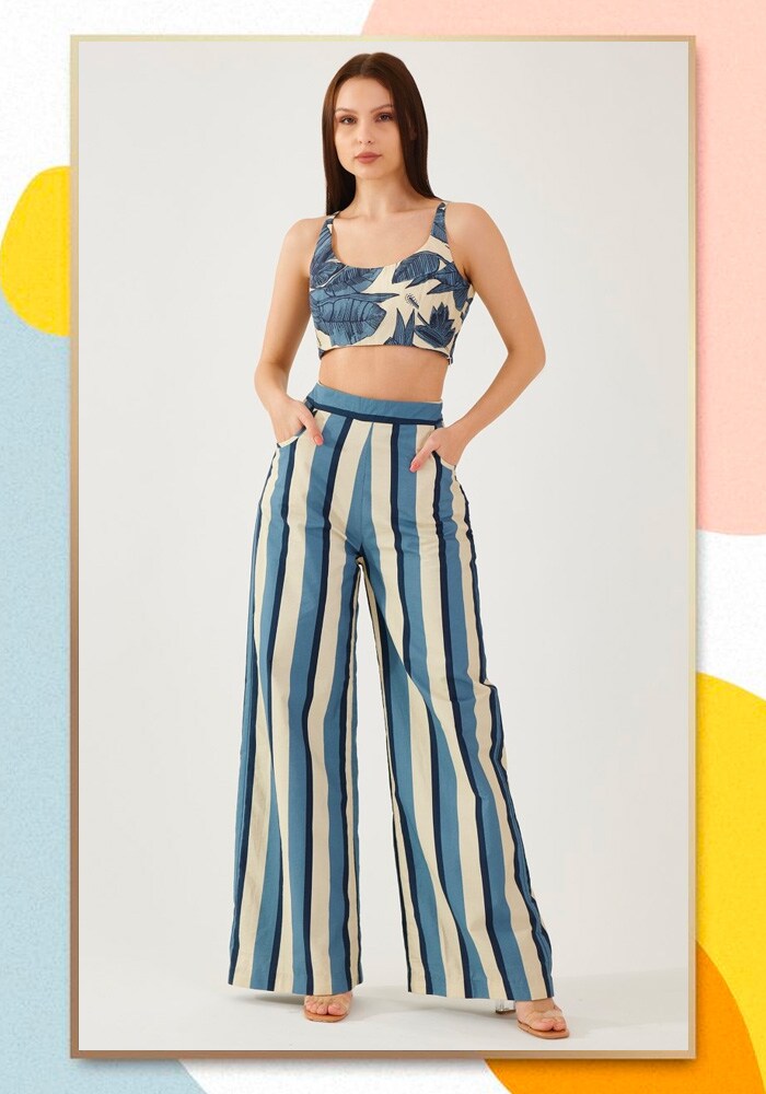 Cool colours make the best of summer. Blue cotton chequered pattern crop top with a skirt makes a cute combo. It is a versatile and stylish outfit. This pattern adds a touch of playfulness and is perfect for a fun event. With a high-waisted skirt or pair of pants in a coordinating or contrasting shade, wear this checkered crop top.