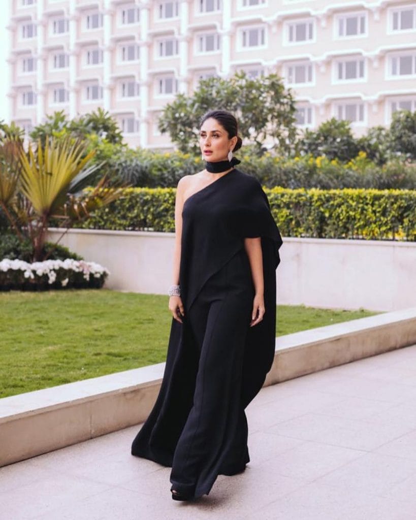 First up is a lesson in chic minimalism by two of Bollywood’s most stylish actors - Kareena Kapoor and Anushka Sharma. Depending on which end of the colour spectrum you find yourself most comfortable in, there’s plenty inspiration from Kareena in her stark black, one-shoulder Elie Saab jumpsuit with a cape-like attachment and Anushka in her beige dress with Victorian leg-of-mutton sleeves and that attention-grabbing thigh-high slit from the Middle-Eastern designer, Marmar Halim.