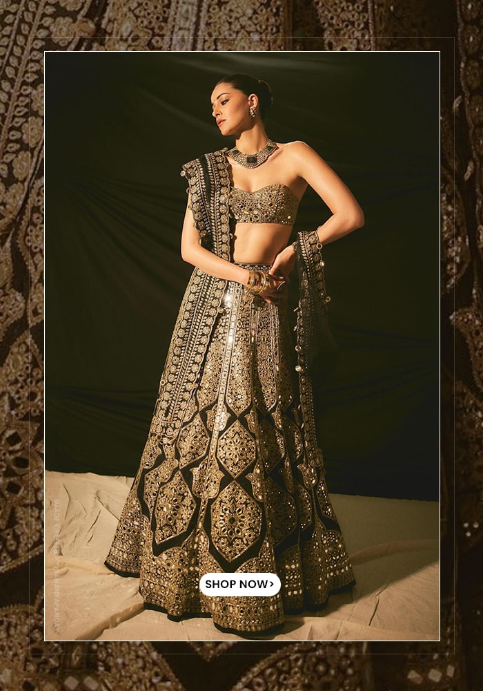 2. Festive Vibes in Black and Gold Lehenga by Arpita Mehta