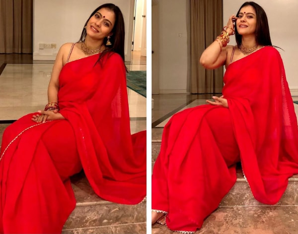 Kajol in Plain Red Saree