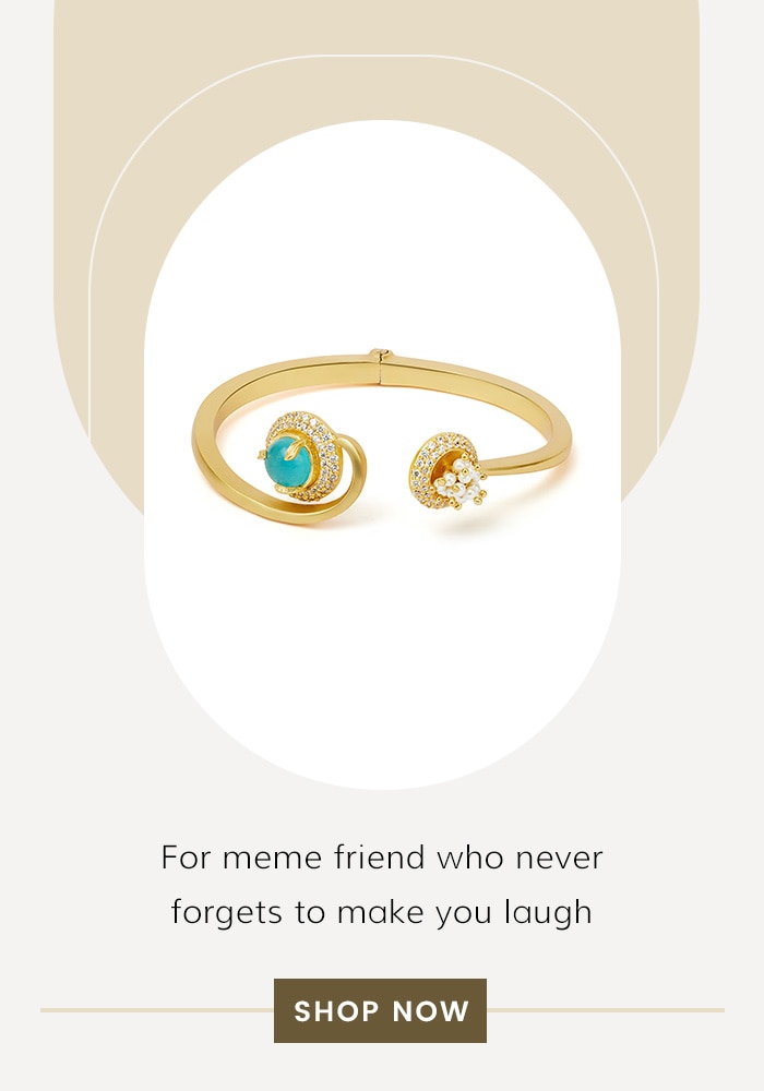 Get your Instagram or WhatsApp friend a JJ Valaya's Embellished Cuff Bracelet. They not only bring a smile to your face but also peace to your mind. Just like your friend's humor the sparkle never fades.