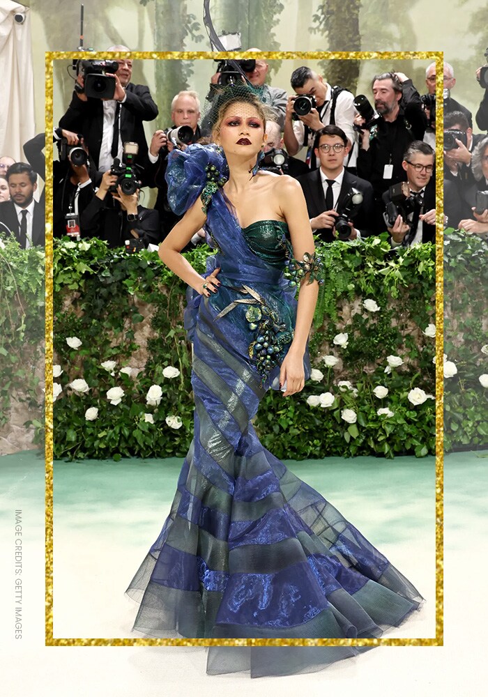 Zendaya posed in a mesmerizing outfit from Maison Margiela. Quite striking, Zendaya always manages to pull off a statement look.
