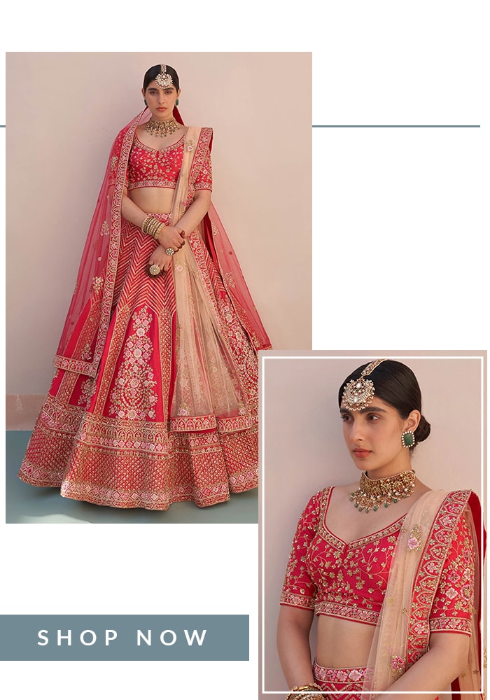 Experiment with fashion and express your unique style during your wedding celebration. Consider significant elements of blouse designs for lehengas, such as the neckline, embellishments, color, and more. Also, find the ideal fit that suits your body type.