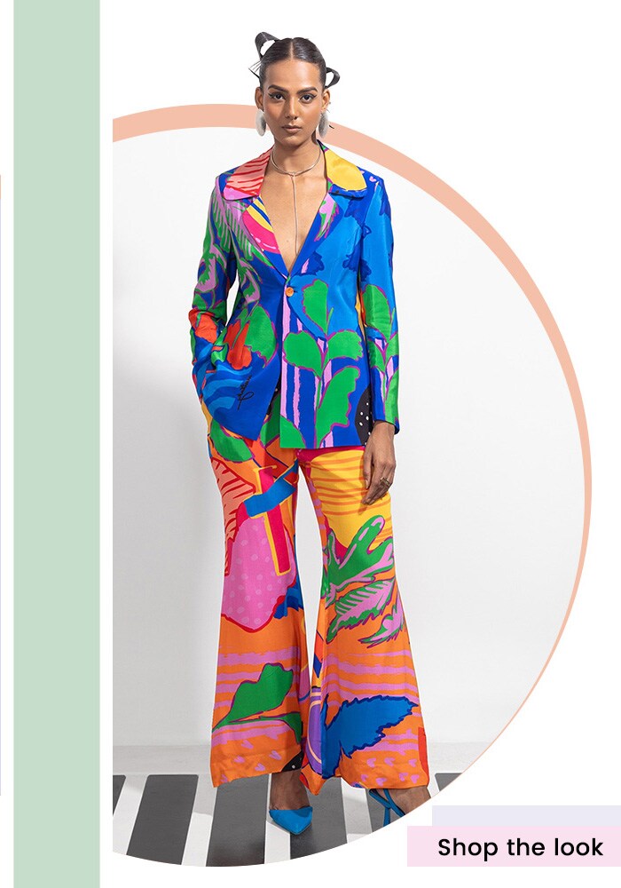 Perfect for summer parties or weekend outings, this bold print statement set is a wardrobe must-have this season. Go for minimal or no jewellery and carry a statement clutch to create a striking balance for the look.