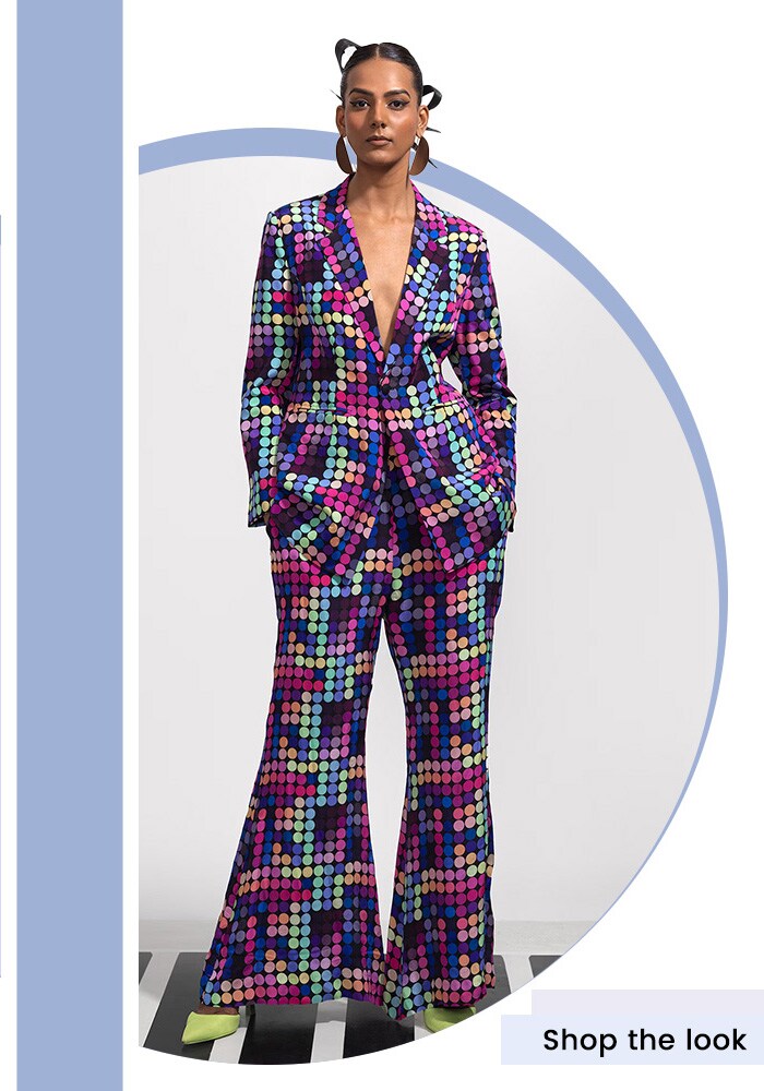 Multi Color Polka Dot Blazer & Pant Co-ord Set: Add a Pop of Luxury