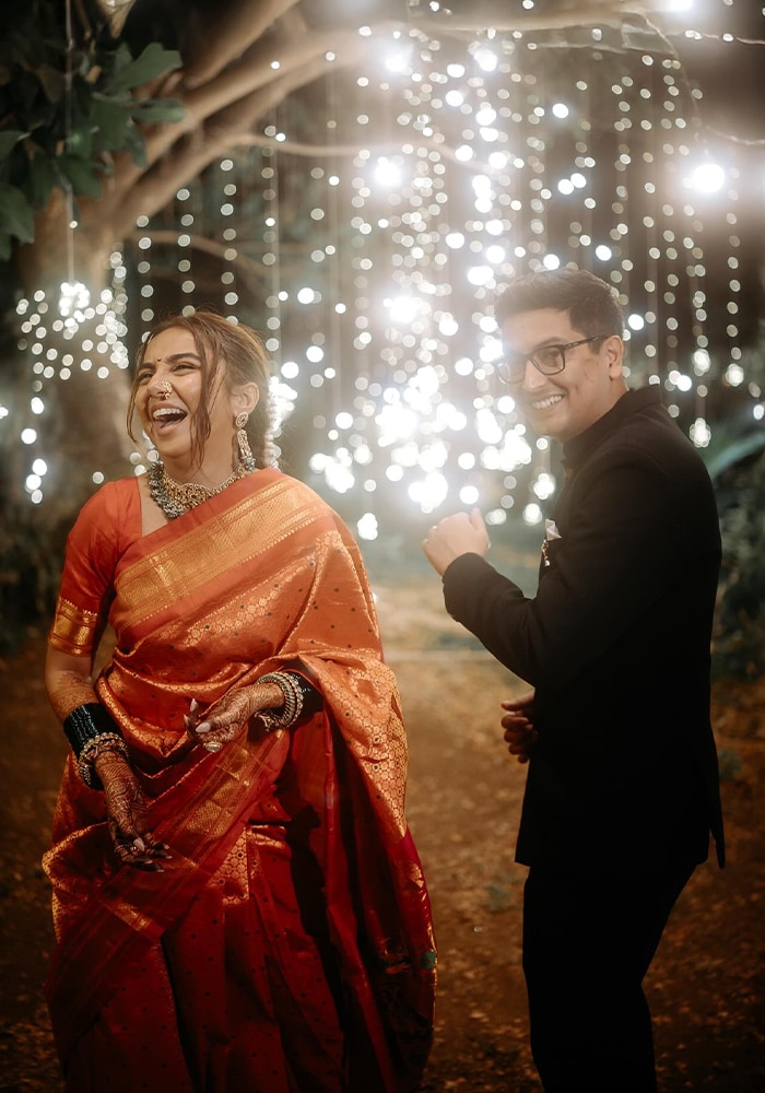 Prajakta Koli tied the knot with her long-time boyfriend Vrishank Khanal in an intimate affair at Oleander Farms, Karjat. After 12 long years of waiting, the pair got married in front of their family, friends, and nature, while being officiated by a female pandit. How cool is that!