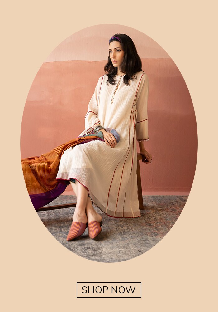 For those days when you are on a hunt for something elegant and fuss-free and you do not wish to spend minutes trying to match the right top with your trousers, workwear-friendly kurtas serve as a savior. Swatti Kapoor's white striped kurta in rich chanderi fabric keeps you fresh through your 9-hour schedule besides helping you to strike a chic statement at the office.