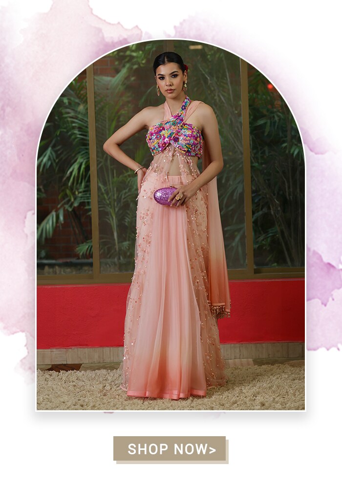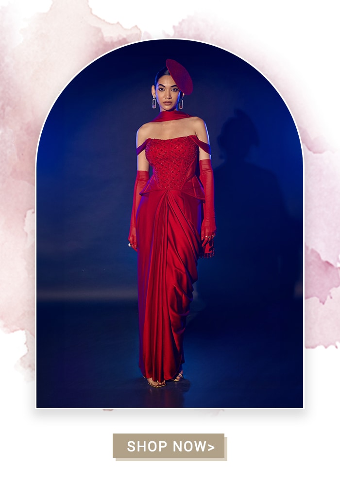 Valentine’s Day is all about love, romance, and cute dates. This day calls for a saree in a lovely hue of pink, ruby red or luxurious burgundy. A satin or crepe saree will add an extra luxurious look to your look. Wear your heart on your sleeves with a delicate cape saree blouse made of lace or silk. The gorgeous pink saree is further elevated by a delicate diamond necklace and small studs. Your perfect date night attire with a hint of ethnicity is just a few clicks away.