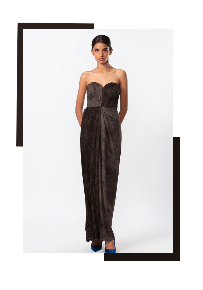 Infusing statement accessories with your simple gown is always a safe bet to play when attending soirees or functions like cocktails or receptions. If you are selecting a designer gown for your own wedding events, you must look for options like an embroidered gown, draped gown, embellished gown, one-shoulder gown, and more.