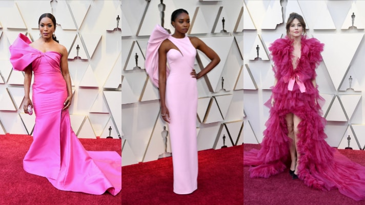 Pretty Pinks - These ladies exude feminine charm in pink numbers. Angela Bassett is defying all age barriers in this flawless Reem Arca gown; Kiki Layne in a powder Pink Versace gown is giving us some serious beauty goal while Linda Cardenelli is a vision in pink in the high low ruffle Schiaparelli gown.