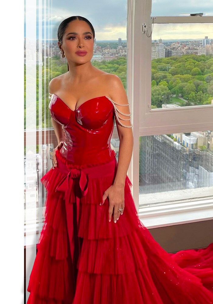 Keeping the Virgo spirit high, Salma Hayek is seen making a statement look with not much accessorizing! The red color might be a confident choice to attract attention but the attention to detail for the outfit presents her style sense.