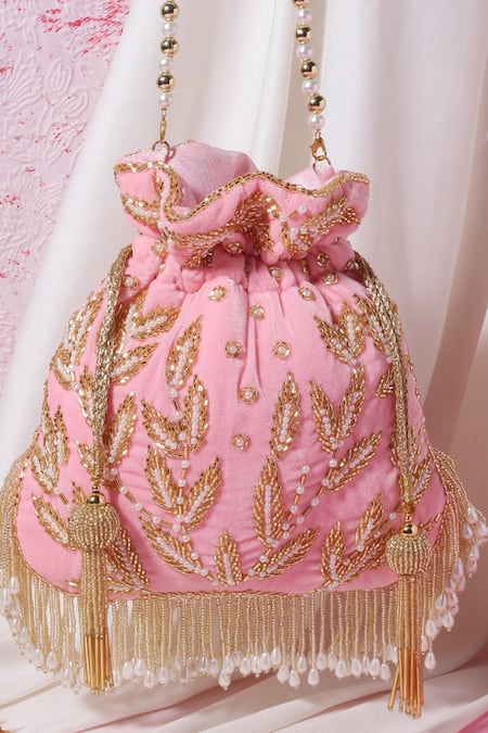 حقيبة بوتلي رااس مخمل حرير مطرزة بالزاري