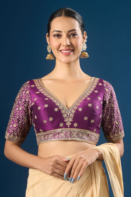 بلوزة ساري مطوية بتطريز كانثا