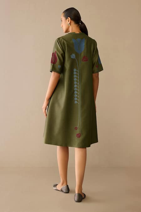 فستان أتارا زيتوني شاندرى مطرز برقبة دائرية ومفتوحة مع جاكيت