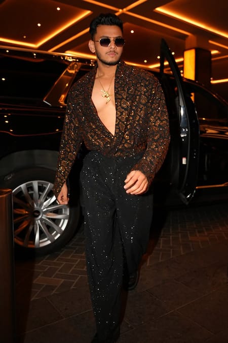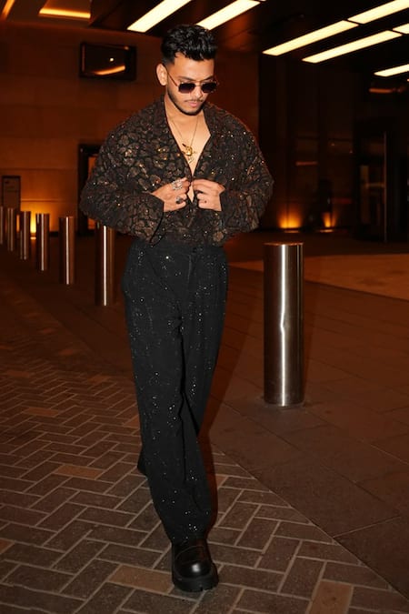 قصة بليزر قصيرة، تفاصيل طبعة شاملة، بنطلون مزين باللمعان