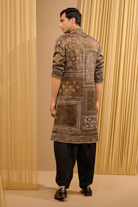 زيتوني كورتا يتميز بطبعات زهور شاملة وياقة ماندراين