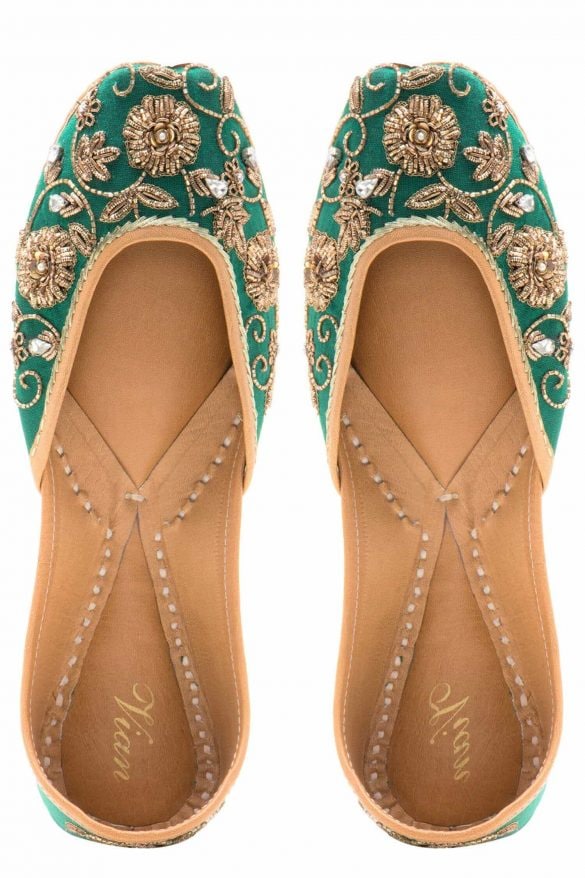 Anita Dongre’s design magic never fails to impress anyone, including the coeval bride. This modern twist to a traditional red lehenga has us swooning all over it. With floral and elephant motifs over it, it gives a whole new perspective on printed bridal lehengas. This sleeveless red and blue lehenga can be paired with colourful choker set and a vintage passa. Ethnic wedges can add a fun twist to complement the lehenga. We suggest a nude lip and smoky eye makeup look to bring all the focus on the jewellery.