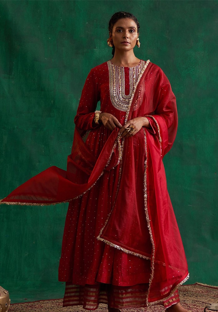 If you're looking for a classic ethnic fit, opt for kurta sets. Delicate jhumkas or chandbali earrings, along with designer juttis, can enhance your overall appearance without overwhelming the outfit.