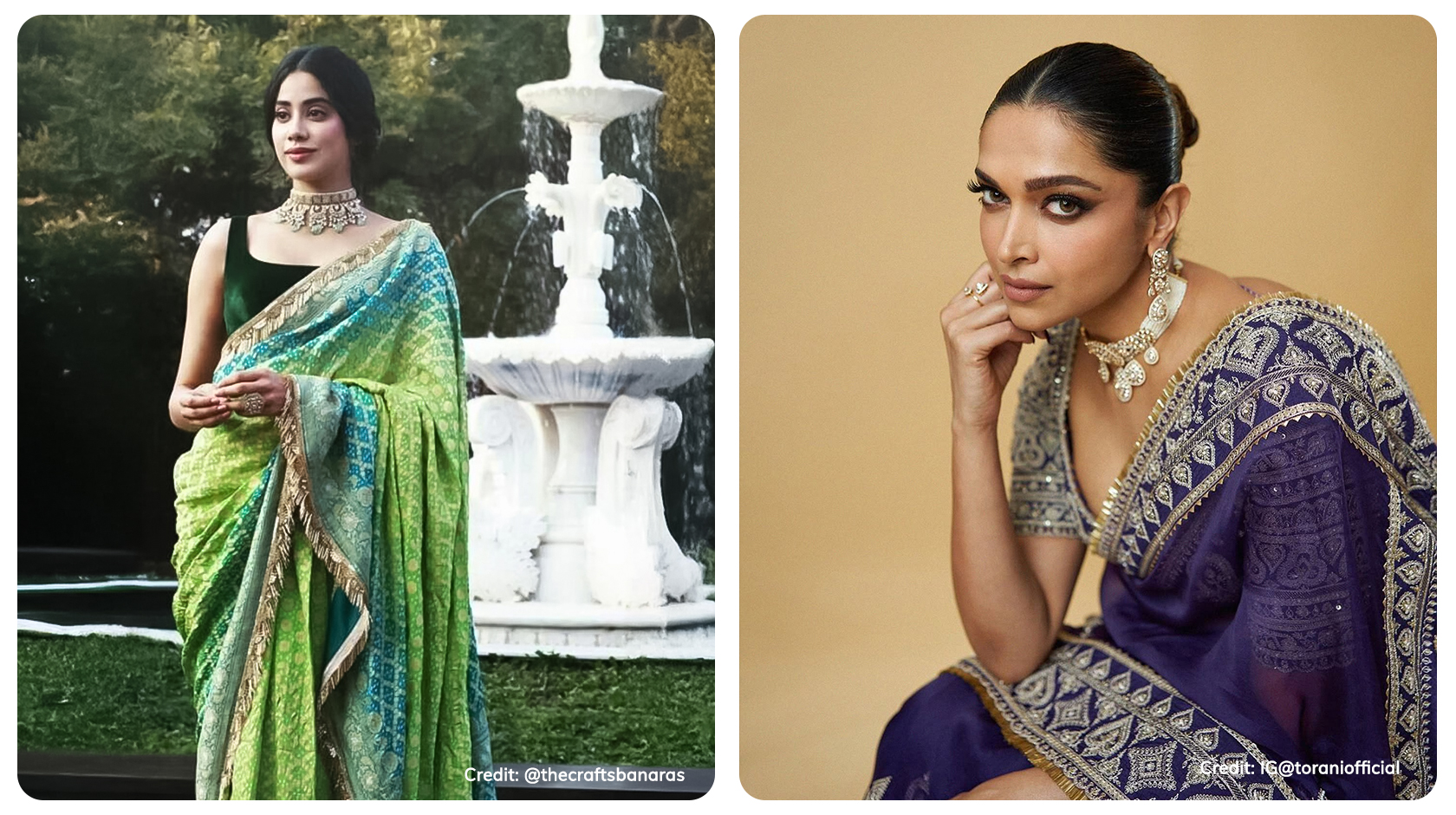 The Modern Blend: Contemporary Gota Patti work is more subtle and refined. Instead of dense, all-over patterns, you will find sarees with scattered Gota motifs or a delicate Gota Patti border. Designers are also using lighter, silver-toned Gota instead of the traditional gold for a more modern feel. This toned-down approach makes Gota Patti sarees versatile enough for cocktail parties and evening receptions.