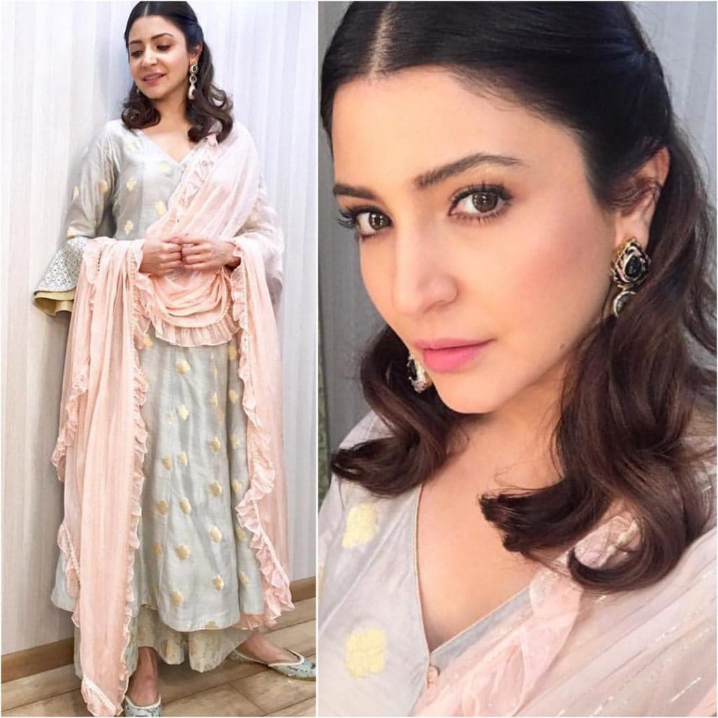 Get all demure and dainty with some pastel magic. Anushka flaunts a lovely traditional outfit for one of the events and steals our heart with her stunning look.