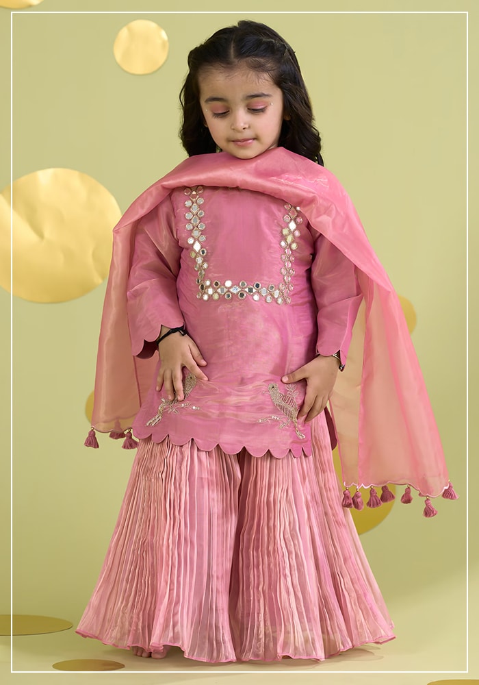 - للبنات: فساتين حفلات ملوّنة، تنانير توتو، أو أطقم متناسقة مع إكسسوارات شعر لطيفة.
