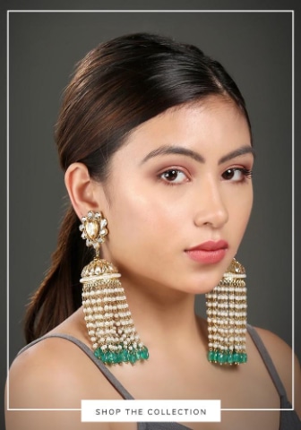 Large, dangling jhumkas are a non-negotiable part of this style. Whether they are gold, silver, or colorful enamel, they frame the face and add a playful swing to your movements. Look for "bali" style earrings or heavy traditional jhumkas with pearl drops.