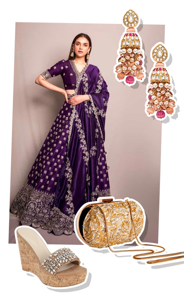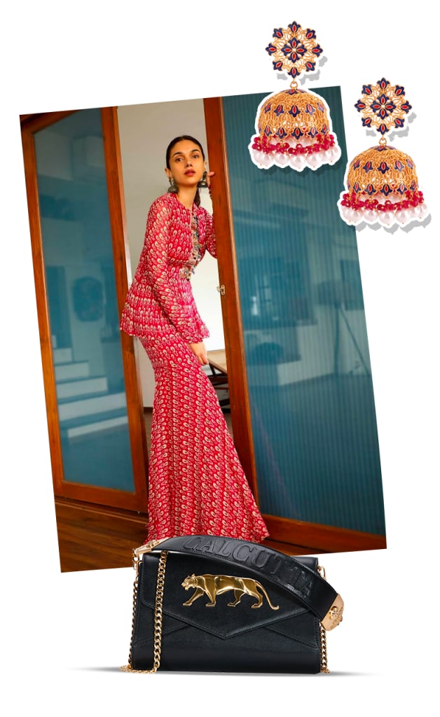 Although wedding-guest inspiration isn’t particularly hard to come by (the Internet is chock-full of celebrity looks, bludgeoning their way to the top of countless versions of these lists), it is hard to separate the really worthy ones from their meh-looking counterparts. However, if there’s one celebrity who seems to nail her looks and manages to inspire us to transition out of our at-home clothes and into these occasion-worthy ones is Aditi Rao Hydari. In an attempt to declutter this sartorial mess even further, we have taken our favourite styles of the actor, paired them with our editor-approved accessories and presented them as a fully-ready look that you can simply buy straight off of our website or even recreate with those that you already have at home.