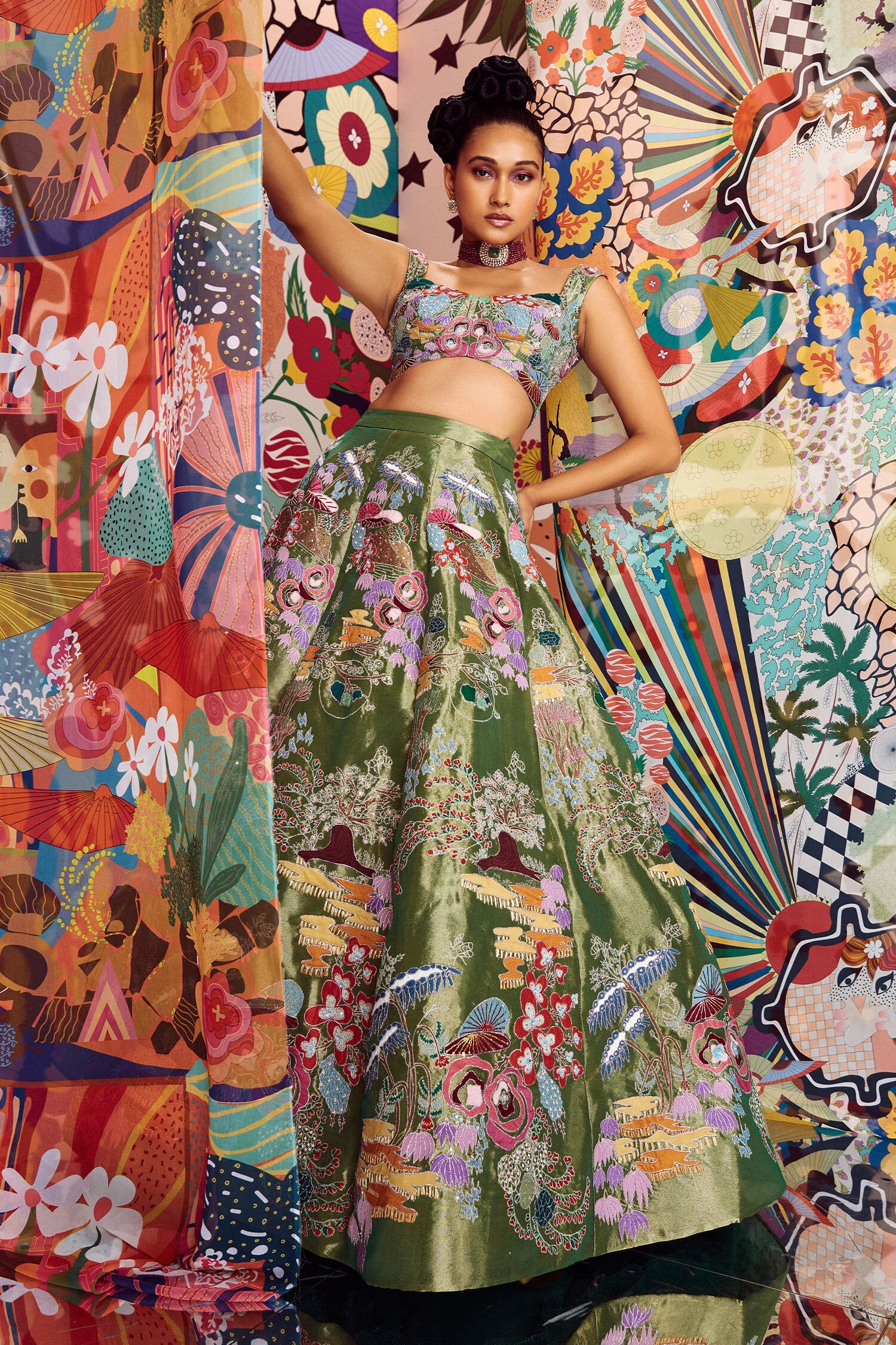 Aisha Rao: Divergence is the process or state of deviation. Our latest collection, Divergence depicts an earth-friendly dreamland, imagined with fantastical prints and textures in mood-lifting colours. In terms of inspiration, I believe what’s true of art is even truer of the planet. The world we inhabit is one of the greatest works of art there is. However, the gap between an ideal world — green, lush and balanced — and our lived experience has widened over the years, propelling us into an age of divergence. It is this sentiment that catapulted us to search for a utopian world. It led to a transcendental escape through our latest collection.