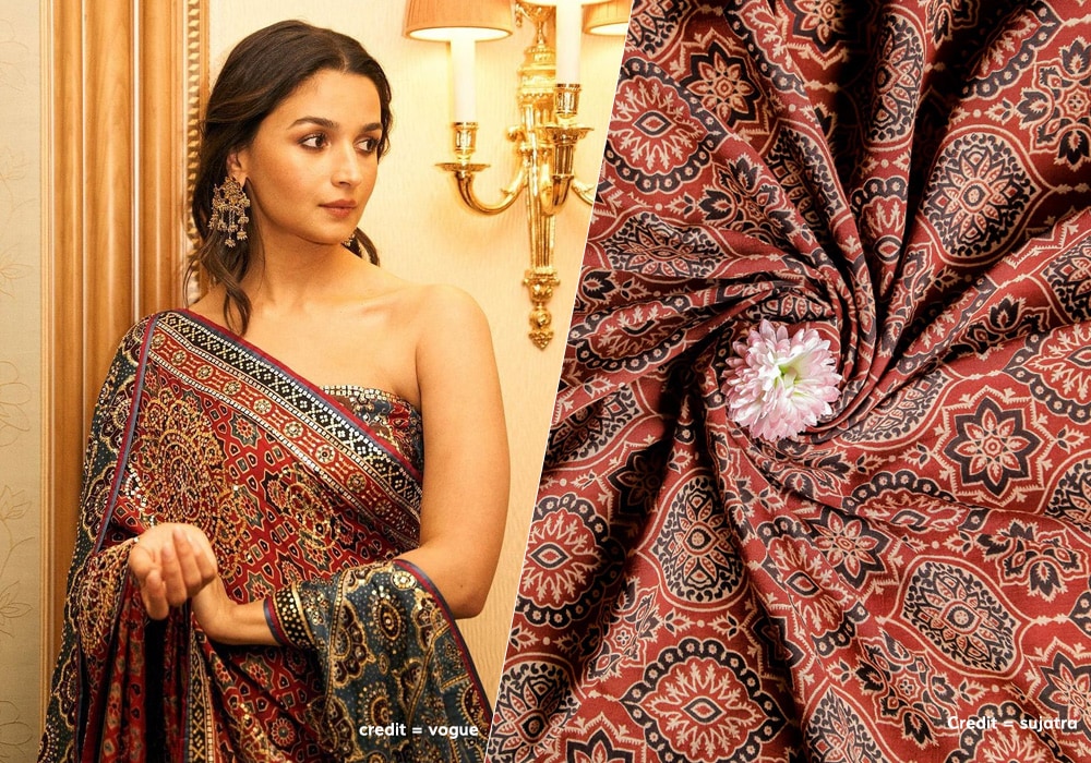 Designers in India and abroad are embracing Ajrakh, using the fabric to create modern garments. While it was traditionally used for turbans and shawls, you can now find Ajrakh on:- Sarees and kurtas