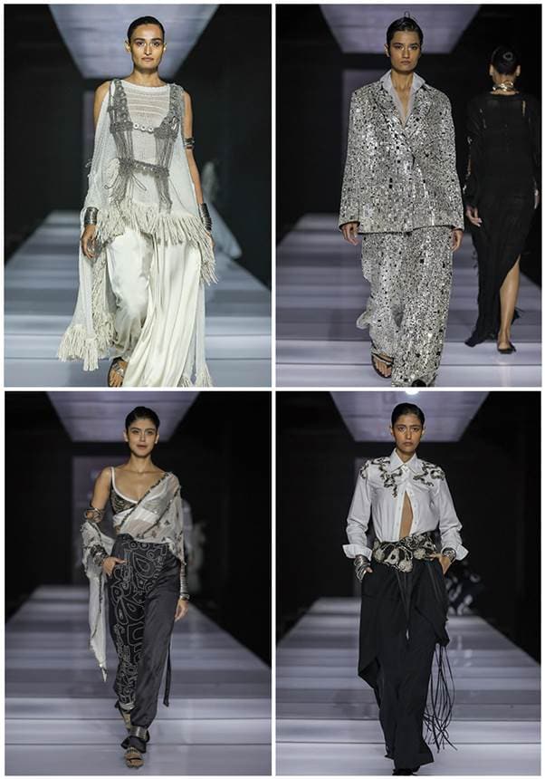 Opening the show, the designer’s designer Anamika Khanna in collaboration with AK|OK showcased ‘Silver Collar’ at LFW 2025. A collection that draws inspiration from the modern women, it features designs that reflect the essence of long-lasting elegance that seamlessly transitions from day to night. With a charming twist to power dressing, the fluid silhouettes presented contemporary style with a versatile attribute. With intricate silver embellishments being the major sentiment, this lineup truly redefines indo-fusion wear in a sublime manner for the Indian audience.