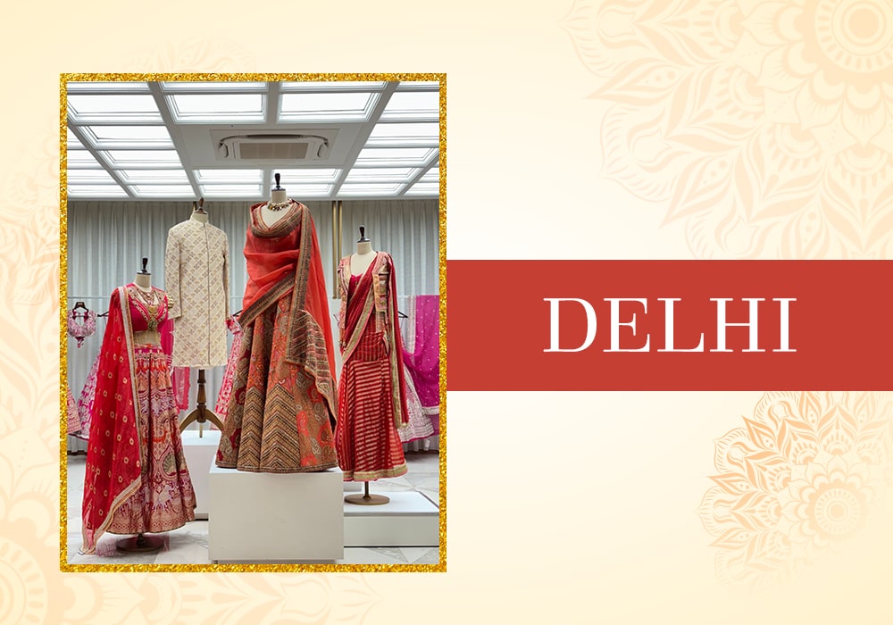 Located in South Delhi, our store houses a curated collection of festive styles. Crafted by India’s top couturiers, shop from a wide range of intricately embroidered statement pieces. From lehengas, sarees, kurta and tunics to gowns and pre draped sarees, browse through an extensive curate ideal for weddings.