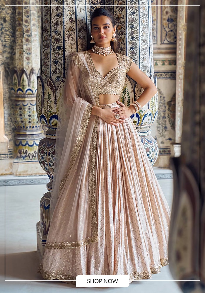 For the modern bride, the Lashkaraa Pink Brocade Lehenga Set was the ultimate dream. This ensemble combines traditional grandeur with contemporary design, creating a bridal look that is both unforgettable and breathtaking. The lehenga skirt, with an attached cancan for voluminous flare, features a stunning trellis brocade pattern woven with pink and gold threads.
