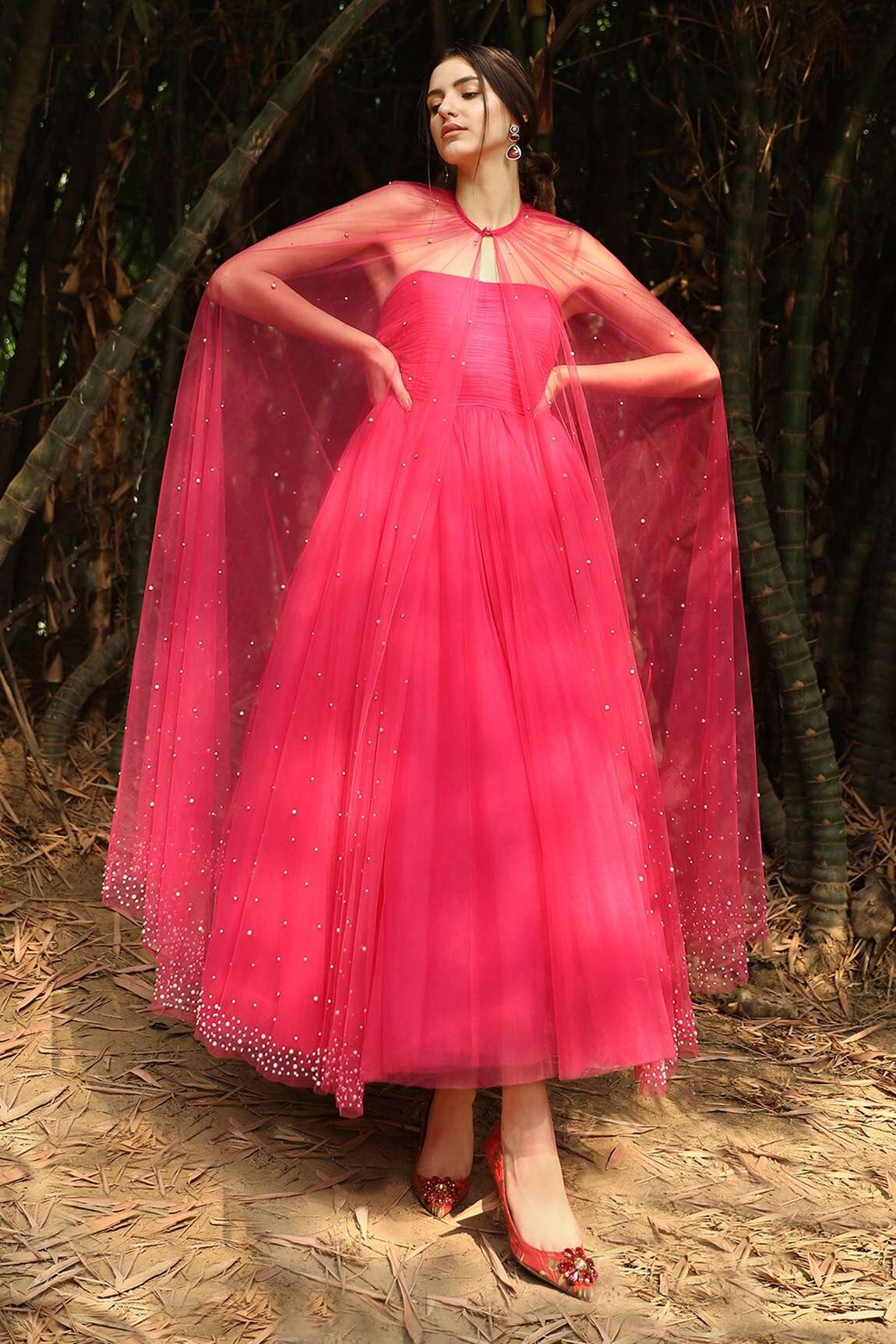 Sorry Edna Mode but we simply cannot say no this hot pink cape dress! A creation by Dania Siddiqui this tea length dress is a stunner.
