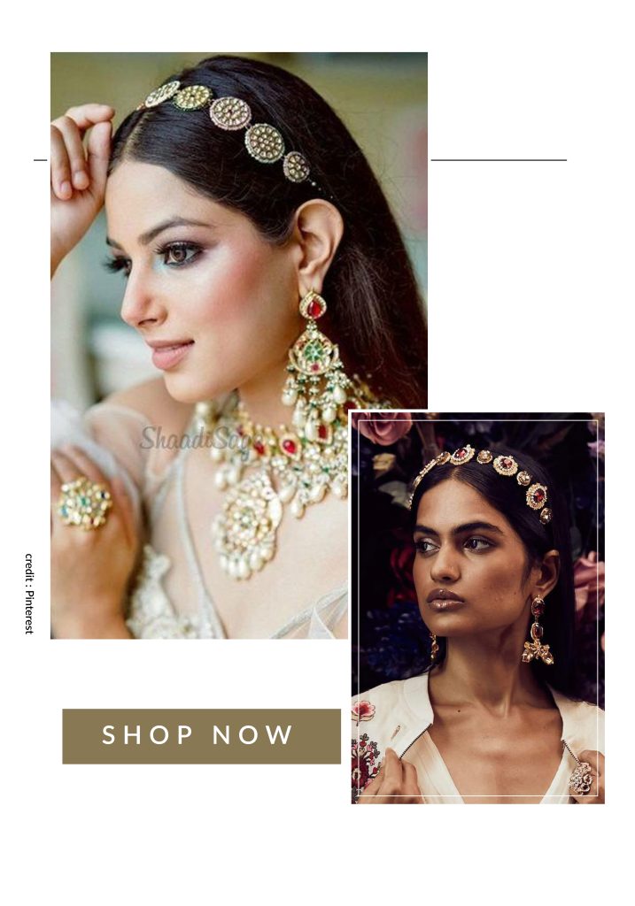 Style it with: Light lehengas, heavy hair accessories, and subtle maang tikkas.