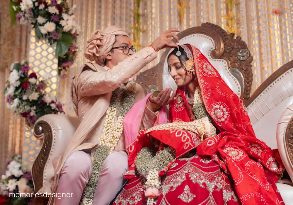 The groom applies sindoor (vermillion) in the bride's hair parting the single most significant act of the wedding ceremony that transforms the bride into a married woman. In Bihar and Jharkhand, sindoor is applied generously and is accompanied by loud cheering, the blowing of conch shells (shankh), and the playing of shehnai and dhol. The moment is electric and unforgettable.