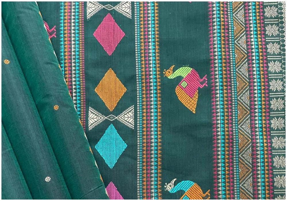 Sonepur is another major hub for this weaving style. Sonepuri Bomkai sarees are often brighter and feature more elaborate Ikat patterns on the borders compared to the original Ganjam style.Bomkai in the Modern World