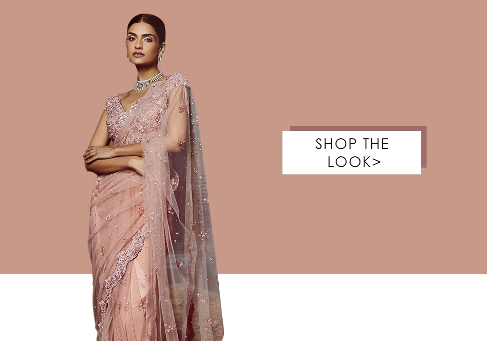 Who would have imagined brides considering pink for their bridal saree? Many brides have broken the stereotype and picked this stunning embroidered saree by Nitika Gujral, which is perfect for the wedding reception. The subtle pink hue and crystal detailing on the neck make it a dream reception saree for the bride.