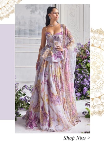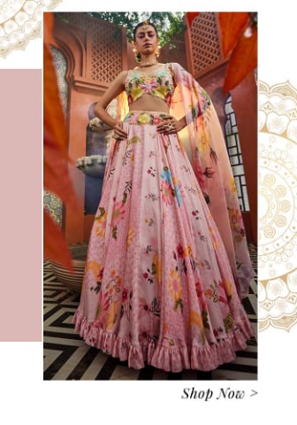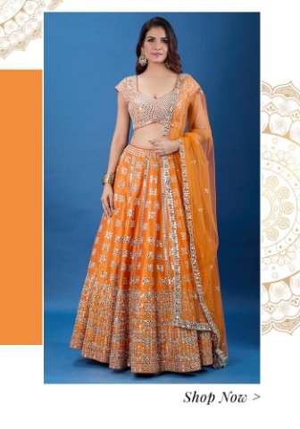 - Lehengas made from premium fabrics like art silk, georgette, or organza.