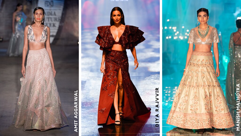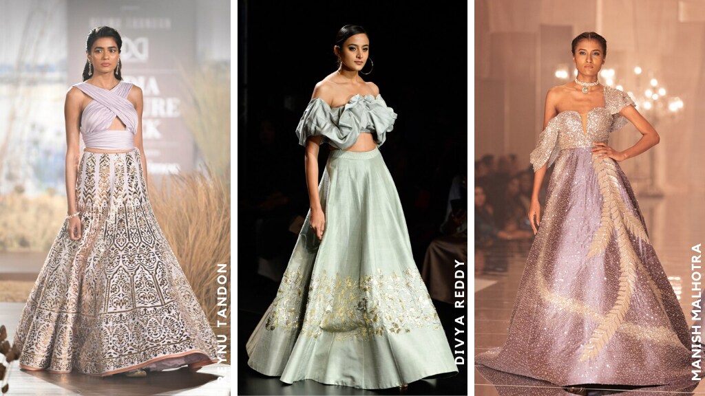 If you no longer like the idea of kowtowing to full-sleeve floor dusting tulle and net gowns for a pared-down reception party or a fun sangeet ceremony, then, we suggest turning your attention towards the return of the '80s trends - exposed shoulders - which have been given a couture-worthy makeover with the help of ruching, pleating and ruffles. Lend some edge to ladylike lehengas this season by going bold with the blouse choices. Find your match in the style that runs the gamut from the cold shoulder styles to bandeau versions of them. If you're still unsure about how to wear the shoulder-less blouses right, check our collection for some much-needed outfit inspiration.