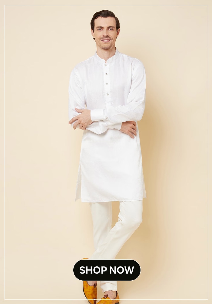 - For Men: A crisp white cotton kurta with pajamas or even a pair of old jeans works perfectly. It’s a timeless look that’s both traditional and practical.