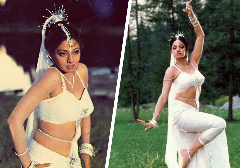 If anyone knew how to make a style statement, it was Sridevi. In Chandni, her white chiffon sarees, paired with layers of diamond necklaces and maangtikka, became the OG “main character” look. Switch to Mr. India and Lamhe, and you’ll see her in heavy lehengas, chunky oxidized silver, and bindis that could stop traffic. She never dialed it down—even with a thunderstorm dance number.