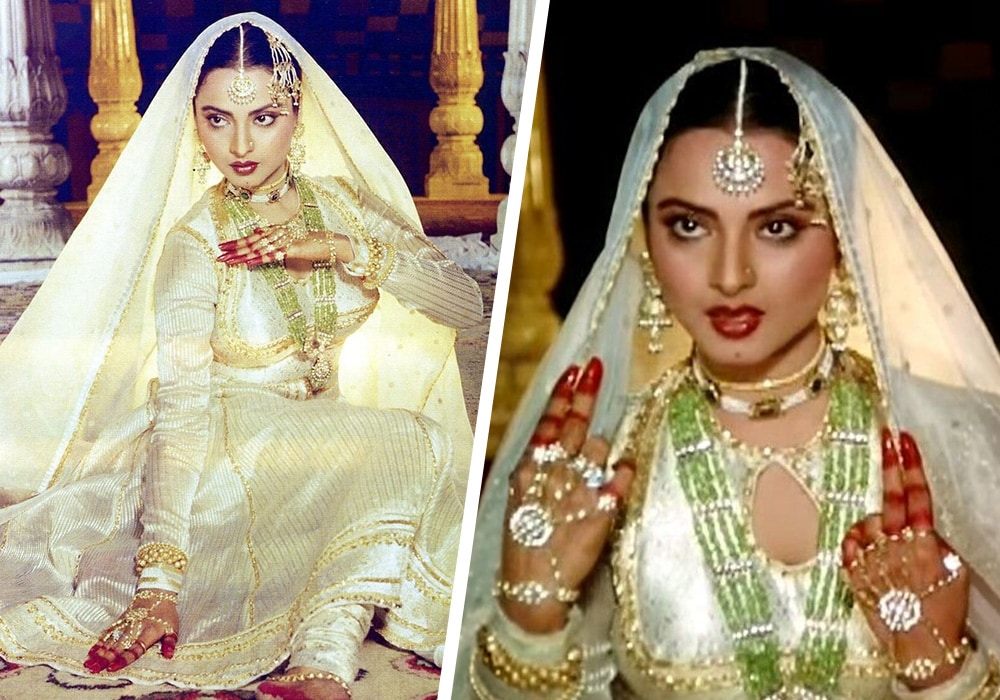 No discussion of Desi Maximalism is complete without Rekha ji. Her iconic rich look in Kanjeevaram sarees, stacks of gold jewelry, bold bindis, and luscious gajras have been immortalized in films like Umrao Jaan and Silsila. Decades before maximalism was trending, Rekha perfected it on and off the screen, making every appearance a masterclass in heritage glamour. To this day, she embodies “more is more” with unmatched grace and drama, setting the gold standard for generations to come.