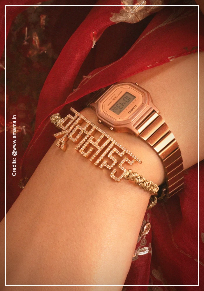 Walk into any cool, curated boutique, and you will likely see Devanagari shining in gold and silver. Jewellery brands are heavily leaning into the script, creating custom nameplate necklaces, minimalist rings, and delicate bracelets. Wearing a Devanagari piece adds a deeply personal layer to an outfit. Whether it is a personal name, a grounding mantra, or a word that holds private significance, these pieces allow the wearer to keep their heritage close to the chest. It is intimate, beautiful, and inherently meaningful.