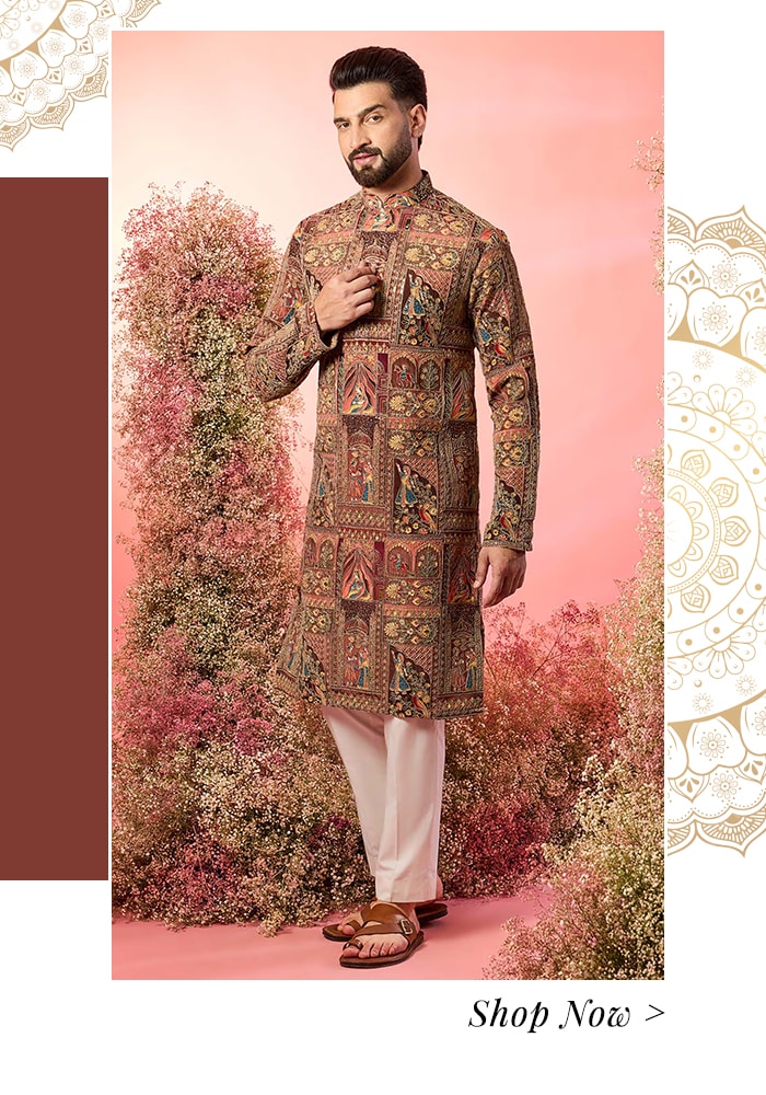 For men embracing festive boldness, Kasbah’s multicolor kurta is a masterpiece. Adorned with intricate Mughal figures and layered with historical motifs, it’s a tapestry of culture reimagined for today’s stage. Rich in detail yet easy in form, it transforms the kurta into a walking canvas of heritage. For Diwali outfits in New Jersey, this ensemble is a reminder that men’s fashion can be just as statement-making as women’s festive wear.