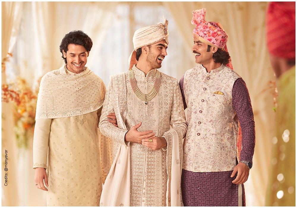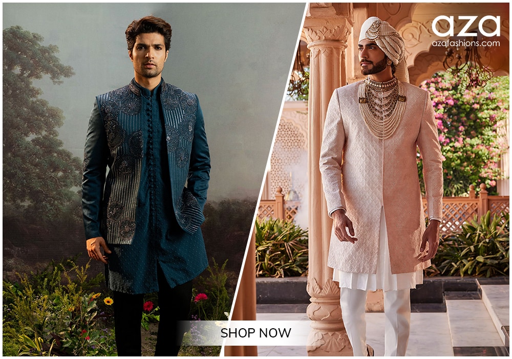 You can explore a vast collection of designer menswear on Aza Fashions. The platform features curated edits of sherwanis, bandhgalas, kurta sets, and suits from leading Indian designers, making it easy to find the perfect outfit for your engagement ceremony.