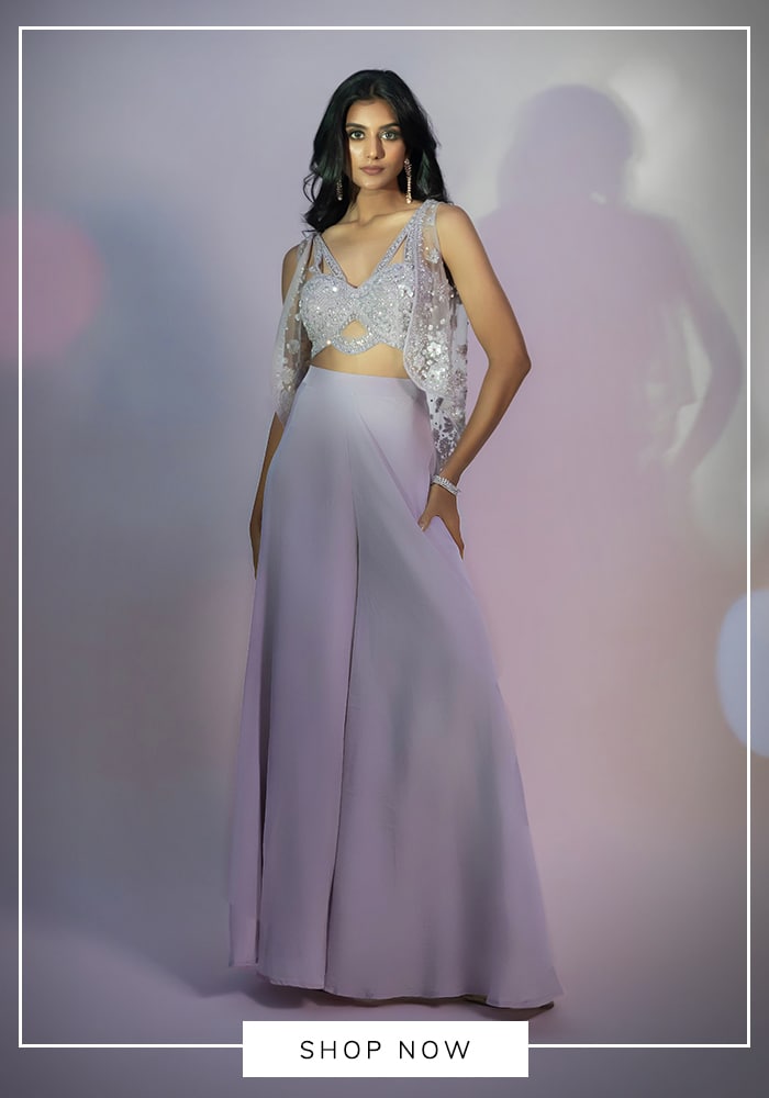 - Diwali sparkle - During festive seasons, you needn't rack your brains over what to wear, for beaded open-embroidered jackets with flared pants can take care of your style requirements. Purples, silvers can add that touch of Diwali glam. Pair them with block heels and a crossbody bag for a complete look.