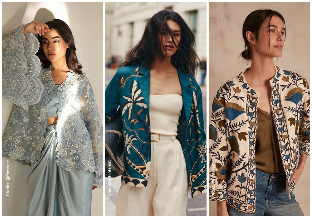 Embroidered jackets are no less than wearable art, stitched designs onto jackets that can be either handmade or machine-designed, translating into a rich overlay fabric. They can be made with threadwork or intricate detailing in a way that gives character to the garment. Different kinds of embroidery can be engraved upon jackets with different styles, from patchwork that combines pieces of fabric into block prints, to mirrorwork; small handcut mirrors carved onto the embellishment. They can be styled across garments, in fact there is much scope that can be applied when it comes to dressing with embroidered jackets.