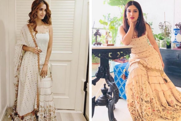 6. Get inspired by Sonakshi Sinha's fashion statement and try the versatile long kurta and palazzo set. This outfit perfectly combines traditional elements with contemporary aesthetics, making it an ideal choice for festive celebrations or formal events. It's a standout outfit that exudes timeless beauty and elegance, and you'll undoubtedly shine in the spotlight.